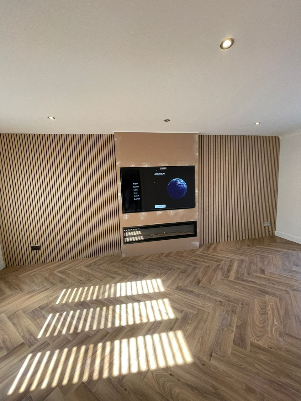Media Wall & Herringbone Flooring